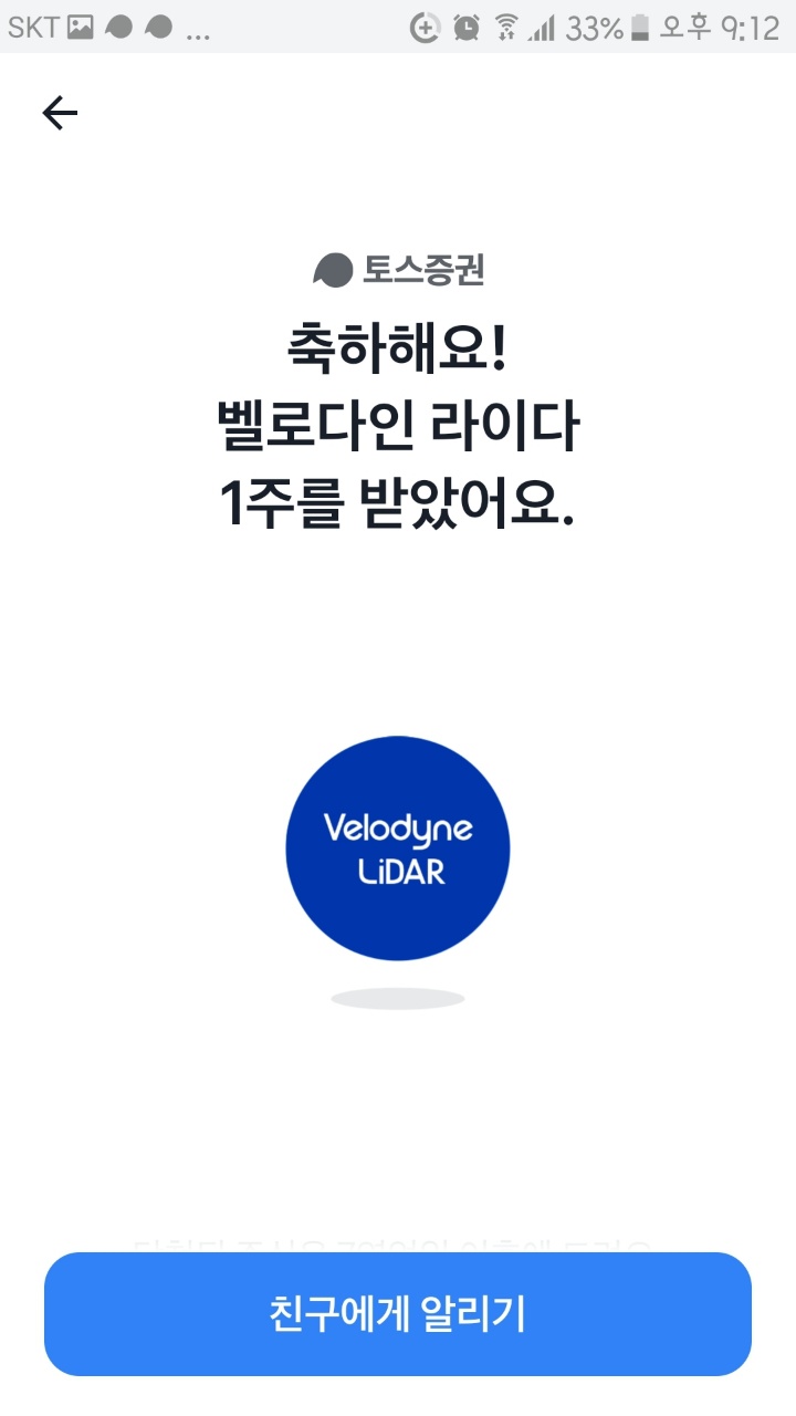 8) 토스 증권 해외주식 1주 이벤트: 이야! 벨로다인 라이다! 에요 처음 듣네요 ^^!!!!!