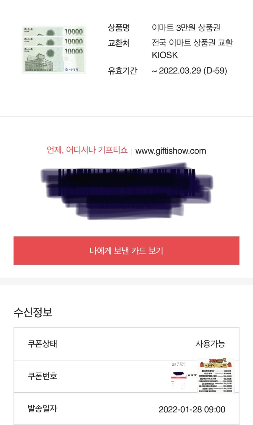 1) 기프티쇼 다운로드하기 2) 기프티쇼 (가입 후) 접속해서 선물함 확인하기.