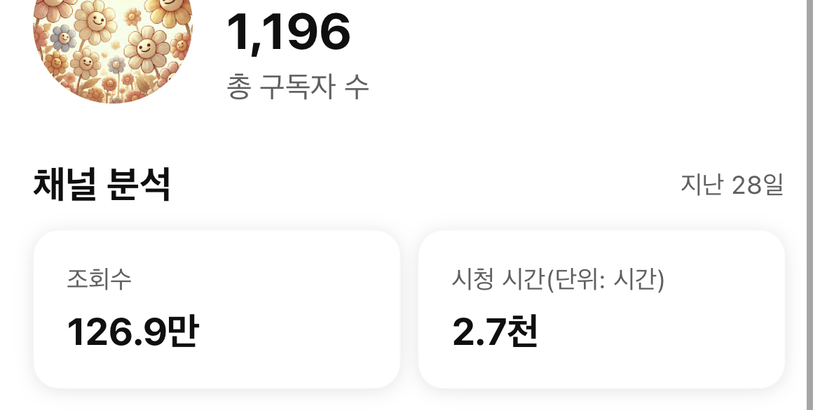 이제 구독자 1,000명이라는 첫 번째 관문을 넘었습니다.
